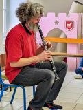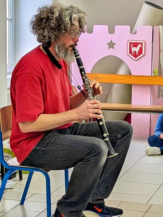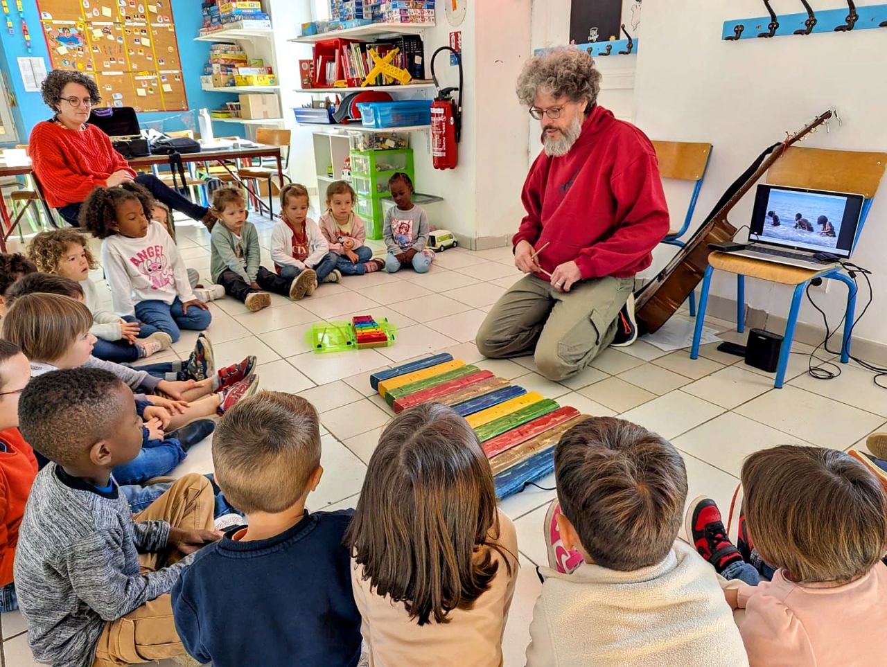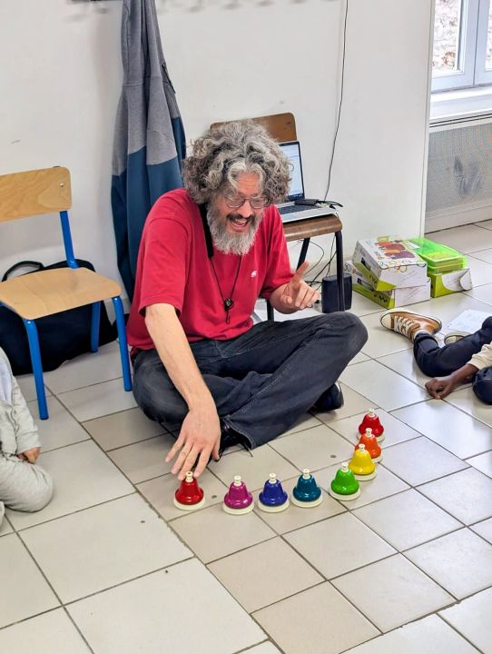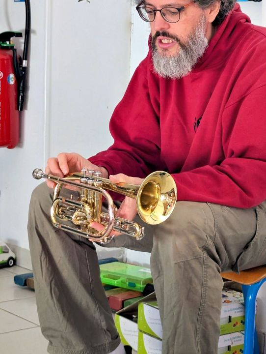 Mathieu, intervenant de l'école de musique intervient chaque vendredi dans l'école.