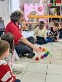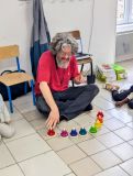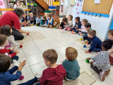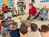 Nous apprenons des chansons du monde et découvrons des instruments.